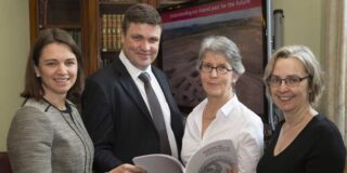 Image caption: L-R Laura Mahoney, Executive Secretary, RIA; Rónán Swan, Chair Archaeology Standing Committee, RIA; Dr Ann Lynch, Chief Archaeologist, National Monuments Service and Imelda Maher, PL&A Secretary, RIA
