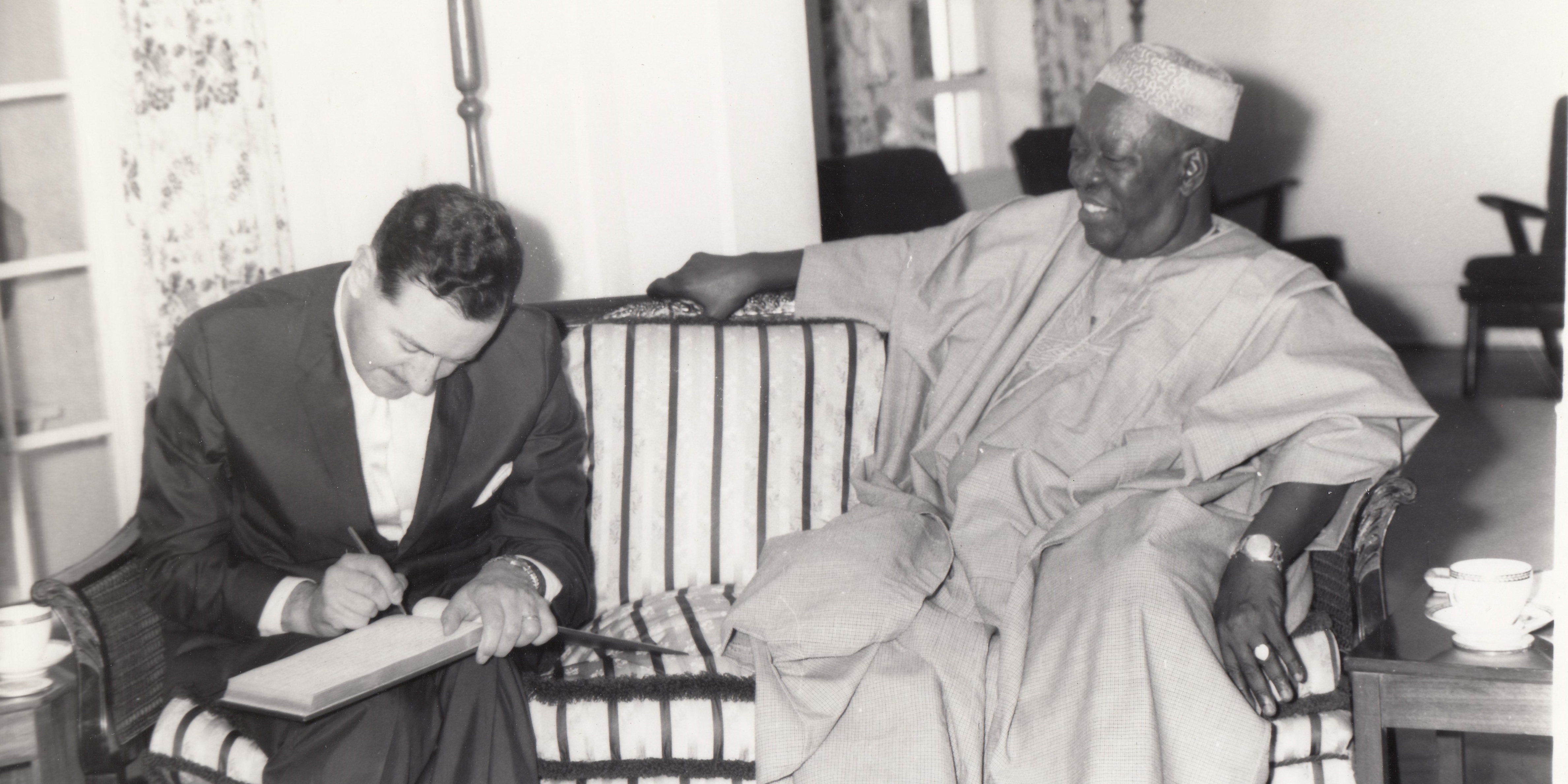 Irish ambassador to Nigeria Eamonn Kennedy pays an official call on H.E. Sir Adesoji Aderemi, governor of Nigeria’s Western Region, 17 January 1962. Reproduced by permission of the Director of the National Archives of Ireland.