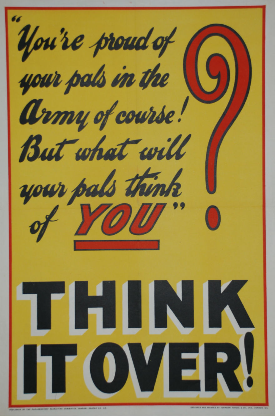 In a similar vein, the poster below forces the viewer to think of how he will be perceived if he doesn’t sign up – it asks the question, if you don’t sign up ‘What will your pals think of you?’