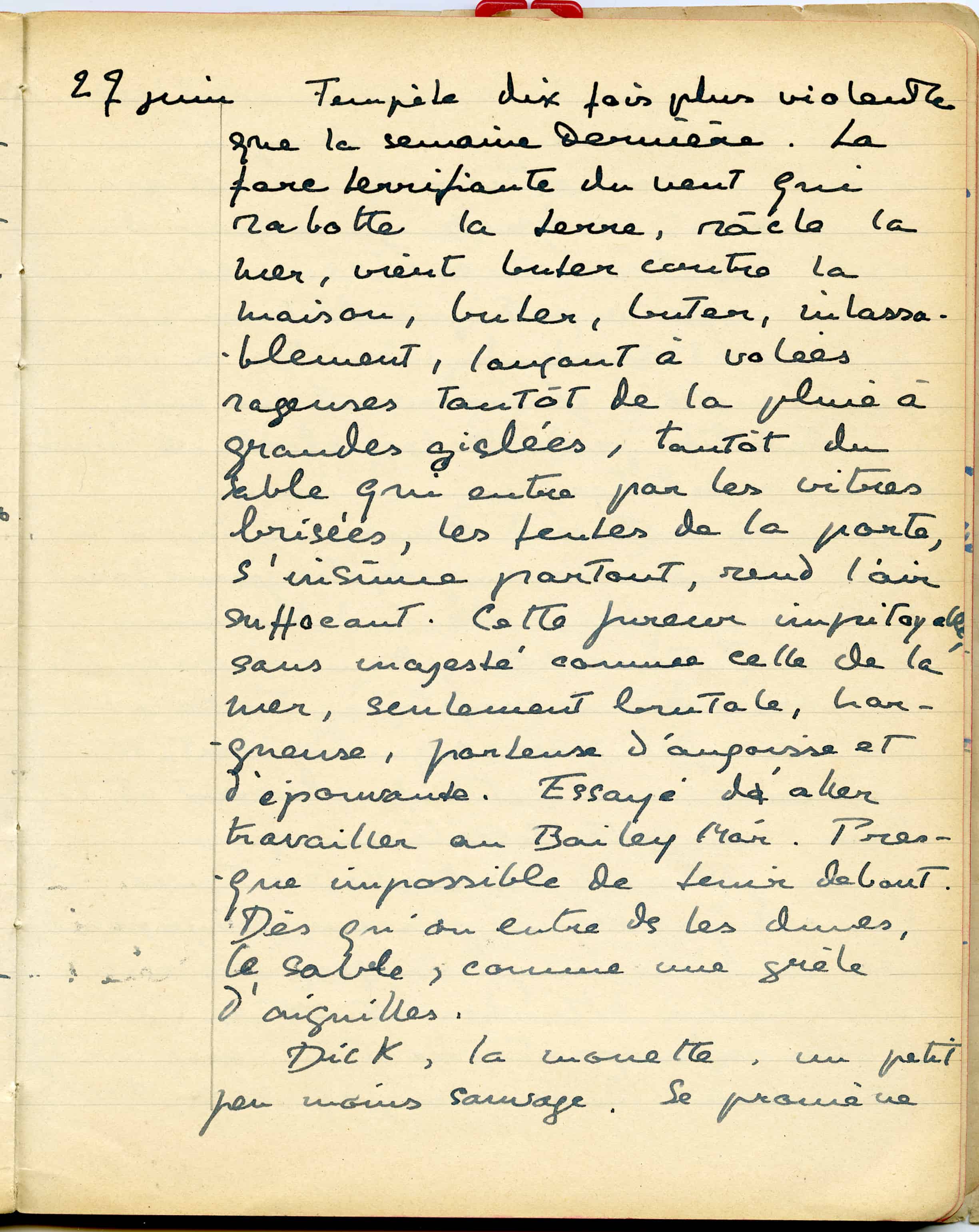A page from Françoise Henry’s private diary in French describing a violent storm on the Mayo Island of Inishkea North on June 27th 1937 (RIA)
