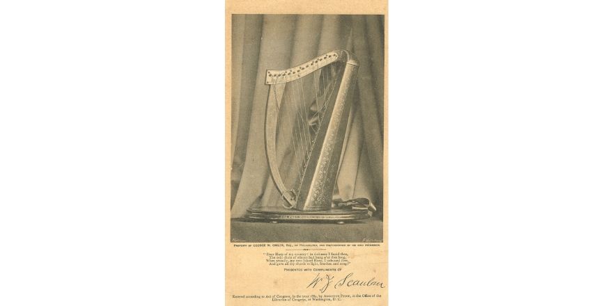 Image 4. Photocard of small Egan harp owned by George W. Childs. Photo courtesy of Corpus Christi Library, Texas.