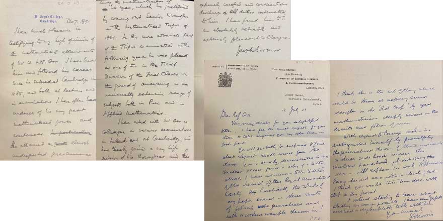 Fig.6 (upper) Letter of recommendation written by Sir Joseph Larmour on 7 December 1891 and (lower) thank you letter written by J. Morris on 18 July 1923
