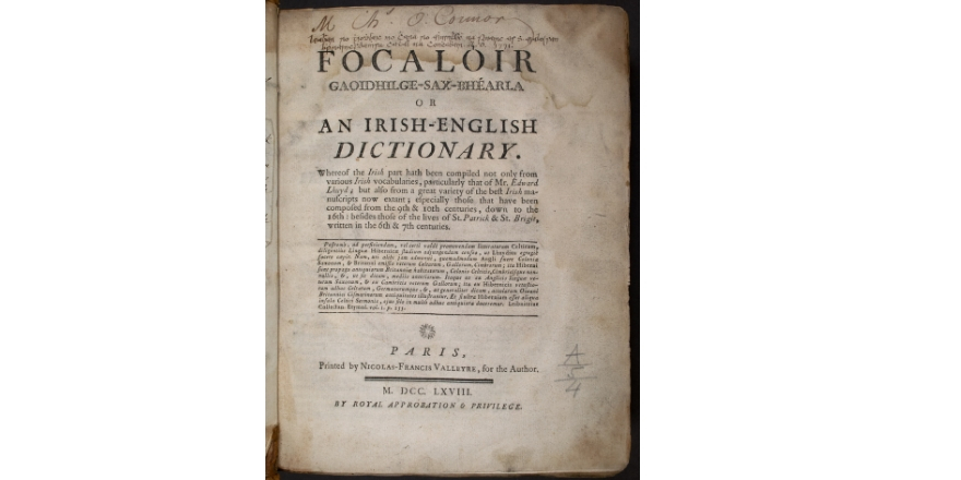 This month marks 250 years since the publication in Paris of Focalóir Gaoidhilge-Sax-Bhéarla, an Irish-English Dictionary compiled by Bishop John O’Brien of Cloyne and Ross (d.1769).