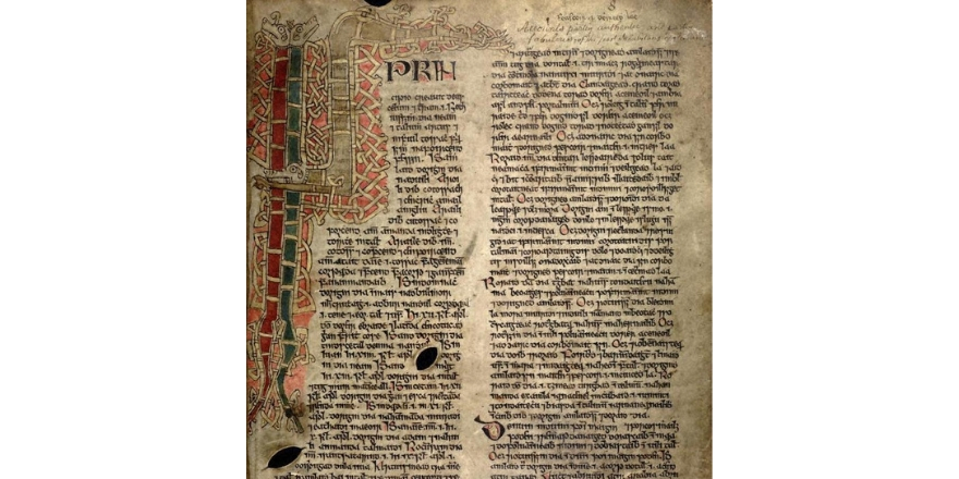 The Book of Ballymote was the work of a team of scribes from north Connacht. There are some particularly fine decorated initials. The best example is the opening page of the Book of Invasions (fol. 8r).