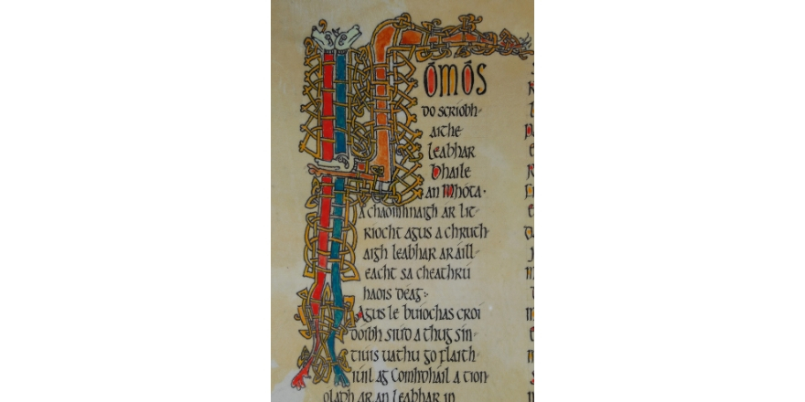 Detail from new vellum page created by scribe Tim O’Neill in 2015 to accompany Book of Ballymote.