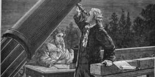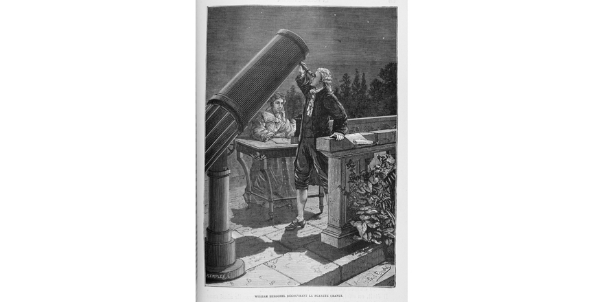 Caroline Herschel recording her brother William’s observations on the night he discovered the planet Uranus. From: Astronomie populaire: description générale du ciels / Camille Flammarion (Paris, 1890)