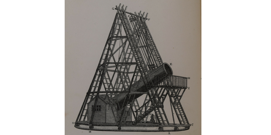 William Herschel’s 40 foot telescope at Slough. From: Memoir and correspondence of Caroline Herschel (London, 1879)
