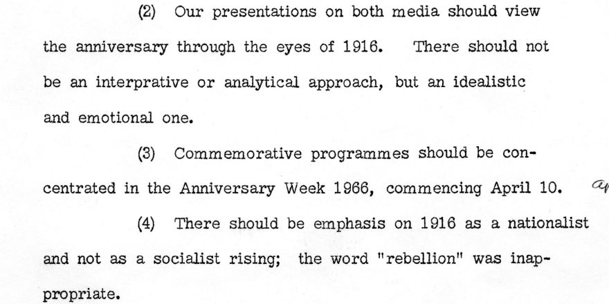 Minutes of a Raidió Éireann meeting on 1916 commemorative programming. 22 July 1965. RIA/KBN/7/7/1/9 pg.1