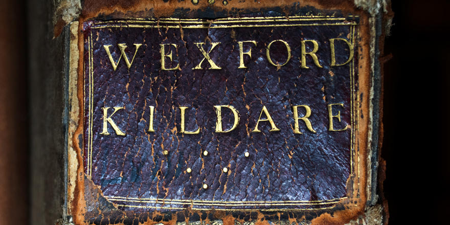 Spine title from the Books of Survey and Disctribution. Vol 2. County Wexford and County Kildare (RIA MS G iii 2)