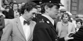 Article image: Malcolm Macarthur leaving the Four Courts, Dublin, during his 1983 trial