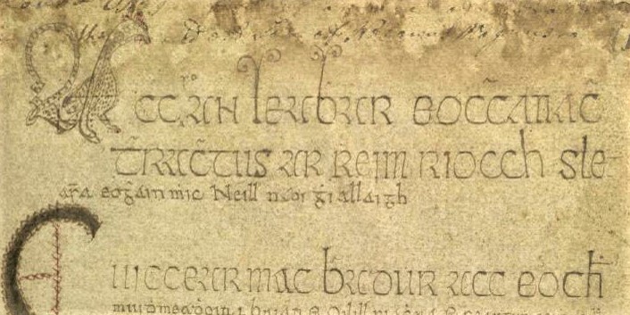 Opening of ‘An Leabhar Eoghanach’ a tract on the O’Neills in Leabhar Cloinne Aodha Buidhe. RIA, MS 24 P 33, p. 101.