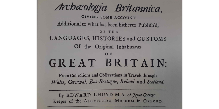Title page of Edward Lhuyd’s Archaeologia Britannica (1707).
