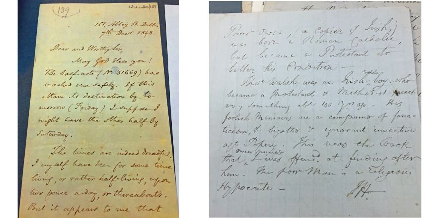 Royal Irish Academy Library. James Hardiman Papers. (left) RIA MS 12 N 20/139 (right) RIA MS 12 N 20/104