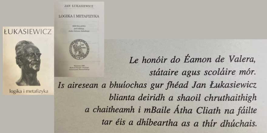 It is with thanks to him that Jan Łukasiewicz was able to spend the last years of his creative life in Dublin, welcomed after being expelled from his homeland.’