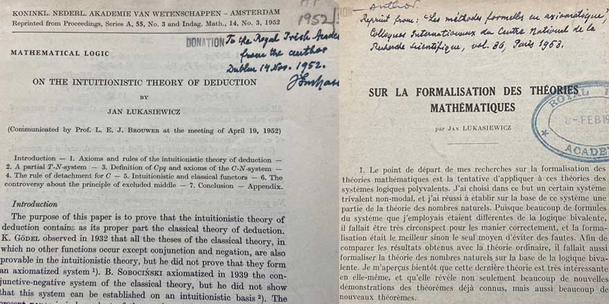 On 11 October 2022 the Royal Irish Academy hosted the launch of an exhibition marking the life and career of Professor Jan Łukasiewicz (1878–1956), a Polish logician and philosopher whose work has been instrumental in the developments of both academic fields. Some of his most important work was completed in Ireland after the second world war, while he held a Professorship of mathematical logic at the RIA.