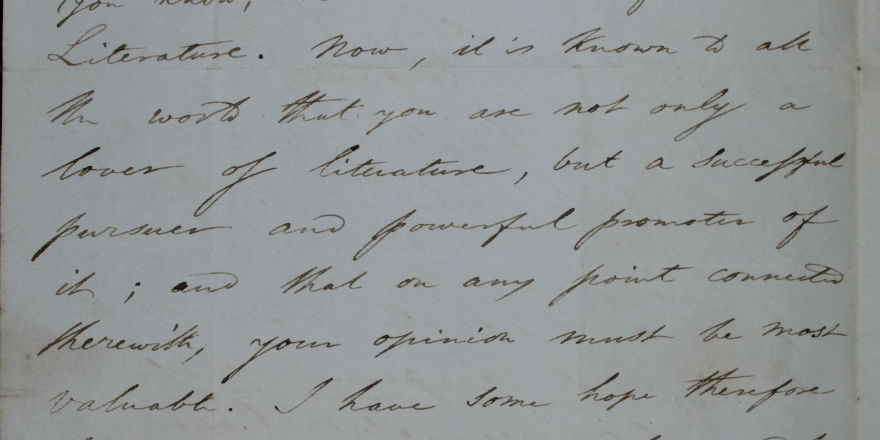 ‘it is known to all the world that you are not only a lover of literature, but a successful pursuer and powerful promoter of it, and that on any point connected therewith, your opinion must be most valuable’