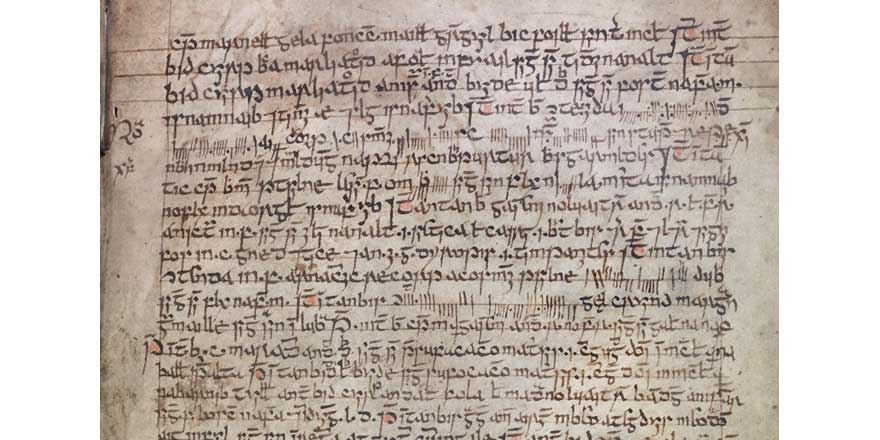 Many of the medieval and modern manuscript sources housed in the Royal Irish Academy library offer valuable evidence for use of the script known as ‘ogam’, a distinctive writing system that was invented for the Irish language and is attested on stone monuments in Ireland and Britain from as early as the fourth century. The major new collaborative project OG(H)AM, run by researchers at Maynooth University and the University of Glasgow, is aiming to harness digital tools from different fields, including linguistics, archaeology and manuscript studies, to develop a better understanding of the changing historical contexts and contemporary social value of ogam script. Part of this work will involve documenting examples of the writing system from manuscripts in the RIA library collections.