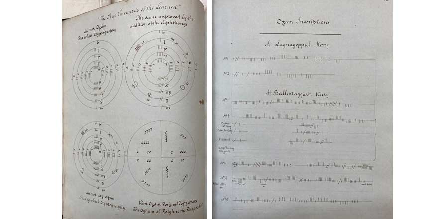 Windele’s notebooks offer valuable insight into the activities of nineteenth-century Irish scholars and antiquarians who sought to preserve and decode ogam inscriptions on stone monuments across the island and further afield. It is clear, however, that ogam also had an enduring appeal that extended well beyond this archaeological record. The medieval and modern manuscript evidence for ogam offers a window into the development of ideas about languages, alphabets and cryptography in Ireland over a span of some 1,000 years. The manuscript collections of the Royal Irish Academy form a crucial part of this larger puzzle – much of which is yet to be fully deciphered.