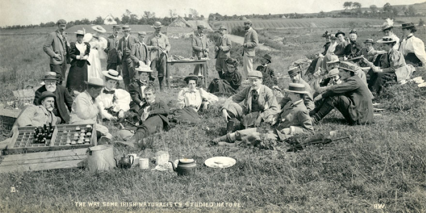 The field clubs attracted both amateurs and professionals who had an interest in the fields of botany, zoology, geology, and archaeology. As many of Praeger and Welch’s photographs make clear, members frequently attended expeditions throughout Ireland to study, observe and collect ‘specimens’. The specimens—as well as the photographs of them—would later be shared with others during meetings.