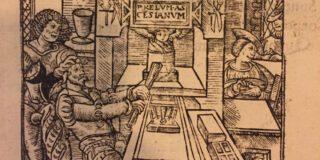 Logos are ubiquitous; we can identify a company or institution at a glance by just a symbol or a font type. The ‘tick’ on the side of a running shoe, the penguin on the spine of a book. From the earliest days of print history, printers and publishers used devices in very much the same way, to mark ownership, to advertise and as a mark of quality. Printers’ devices, also known as printers’ marks, are made up of a woodcut illustration, a motto or initials or all three. Some are more elaborate than others, as we shall see in this series of posts. They are usually found above the imprint on the title page of a book or on the final leaf.