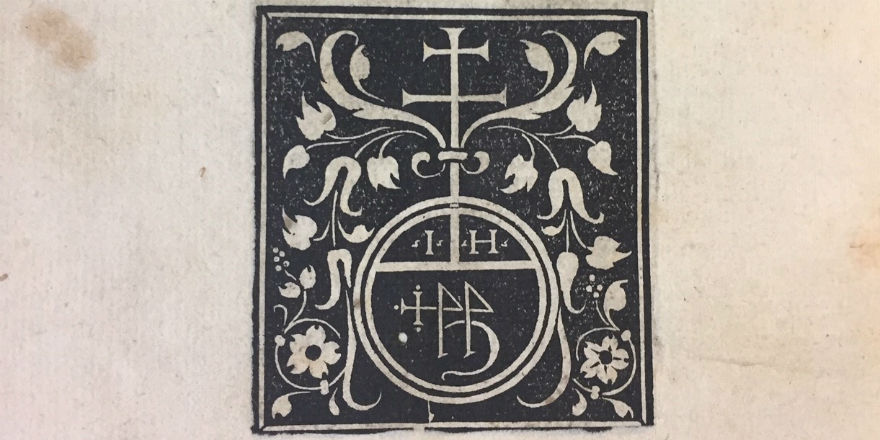 Hamman’s device is made up of his initials I. H. within an orb and cross surrounded by an elegant leaf design on a black background. The orb and cross, globus cruciger, has been a symbol of Christianity since the Middle Ages. It is the representation of Christ’s dominion over the world. In the lower portion of the orb are a reversed ‘4’ mark with a cross and reversed ‘C’. This could possibly represent Hamman’s ‘merchant’s mark’ or ‘housemark’. He was the first in Italy to combine the ‘4’ mark with the orb and in this case the monogram, indicating his German origins, as this was a feature of German printers rather than Italian.