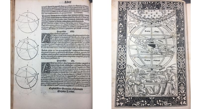 Marginal diagrams and full page woodcut illustration. Epytoma Joannis de Monte Regio in Almagestum Ptolome by Joannes Regiomontanus (Venice, 1496) RIA SR 24 F 19.