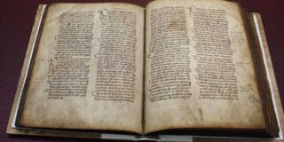 The condition was such that the manuscript could no longer be put on display, and could not be issued to readers because of the risk of loss or damage to disbound parts of the manuscript. It was cleaned, repaired and re-bound by conservator Anthony Cains in 2008-09. It is now bound in Irish oak boards with a white spine made of pig-skin, the vellum leaves carefully resewn into the new binding.