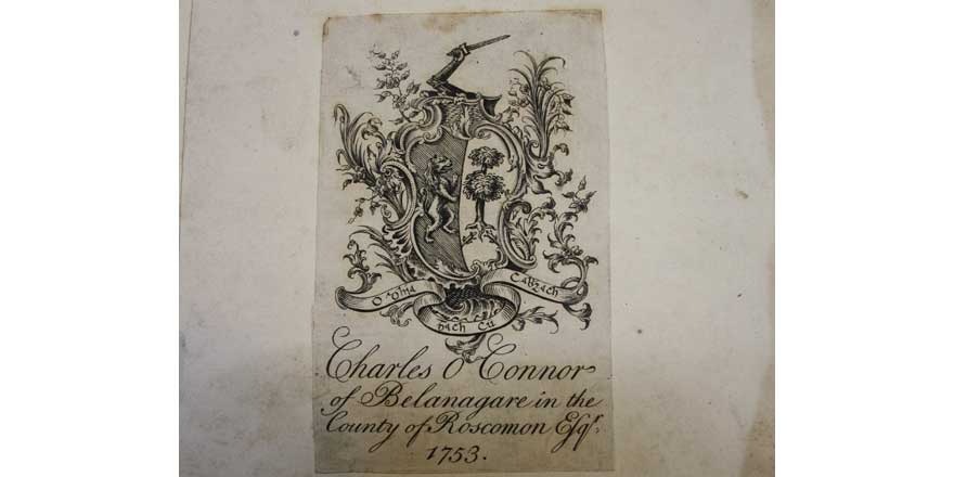 Bookplate of Charles O’Conor from Annals of Connacht (Photo: B. Cunningham)
