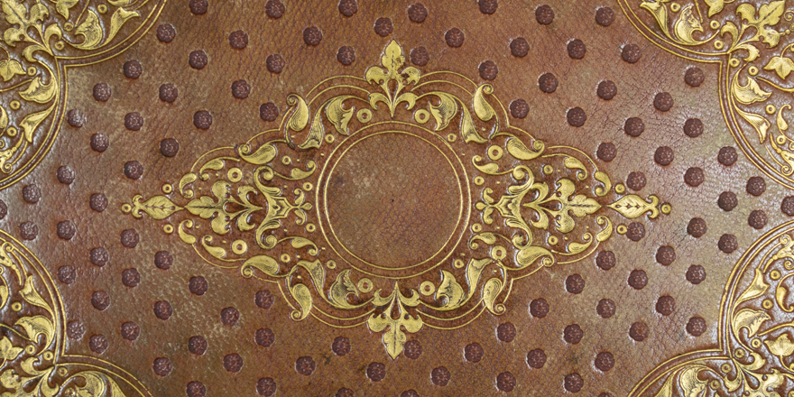 The term ‘never judge a book by its cover’ is certainly apt when it comes to the study of medieval manuscripts, many of which do not survive in their original bindings. This is certainly the case with the manuscripts 12 R 31 and 12 R 35, the former of which is bound in red morroco (possibly goatskin) on four raised bands with extensive blind and gold tooling and red ribbon bookmarks. The binding is likely from the fourth quarter of the sixteenth century, but the curled patterned marbled endpapers were probably added in the eighteenth century. The final parchment leaf exhibits staining caused by the leather turn-ins of a previous binding when it probably acted as a pastedown or inner lining. In contrast MS 12 R 35 was expertly repaired and rebound by A.G. Cains in 1982 and its 19th century binding was replaced with white tawed sheep skin.