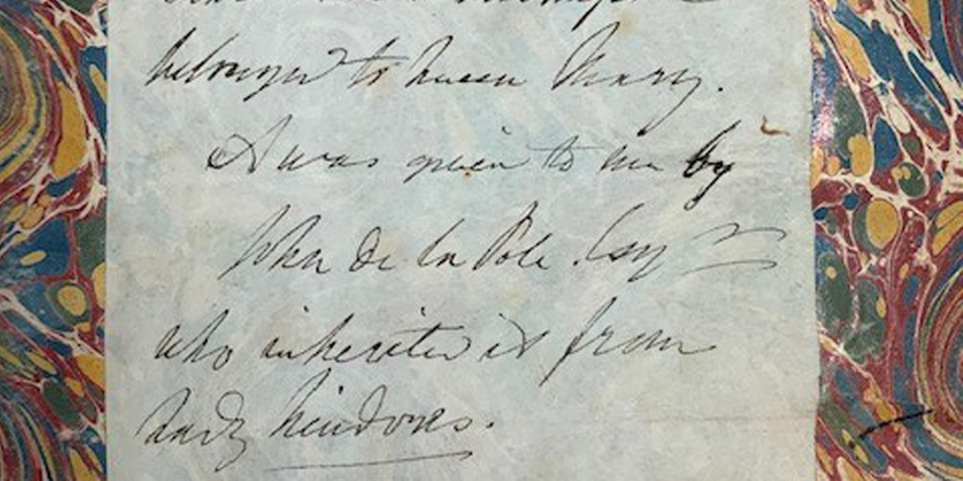 The label on the inside cover of MS 12 R 35, suggests that it once belonged to the great antiquarian S.I. Milligan, MRIA before it was presented to the Academy Library in 1981 by Mrs A. Murnaghan on behalf of her late husband, James A. Murnaghan. MS 12 R 31 was likely commissioned by Thomas, Lord Hoo, Chancellor of Normandy and France, as a wedding present for his bride, Eleanor Welles. Portraits of Lord and Lady Hoo as well as heraldic devices feature in the text. A note on the flyleaf suggests that the manuscript once belonged to the Lindores family in Scotland. It was reputedly inherited by John de la Pole who subsequently gifted it to Mary Queen of Scots. It was presented to the Academy in 1874 by H.A. Forbes.