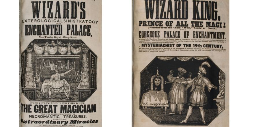 The Royal Irish Academy’s collection of printed ephemera provides fascinating insights into the lively trade in popular entertainment in eighteenth- and nineteenth-century Ireland. Pamphlets and playbills in the collection record human and animal exhibits, displays of equestrian skill and mechanical ingenuity, menageries and giants, all part of the wide-ranging selection of commercial shows competing for public attention during this period. Many of these entertainments were provided by travelling showmen who had already toured London and provincial England. Others, like Marsden Haddock’s Androides, travelled outwards from Ireland on tour. Some of the advertising relies on captivating illustrations as part of its sales strategy; most of it deploys hyperbole and the language of wonder and spectacle in an attempt to draw the crowds.