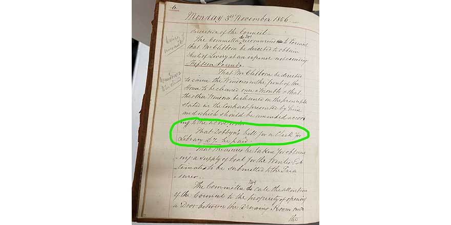 So, returning to our lovely clock in the reading room, one of the staff procedures is to ensure that the clock is wound about once a week and displaying the correct time at the start of the day. That certainly has been the case for over 160 years and this particular clock is still keeping time in the reading room, albeit, with a little help from library staff!